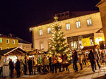 Auf dem Kirchenvorplatz werden auch dieses Jahr die hölzernen Verkaufshütten aufgebaut. Hier kann man an den Wochenenden in der Adventszeit das ein oder andere Geschenk kaufen oder sich bei einem Haferl Glühwein in heimeliger Atmosphäre auf das Weihnachtsfest einstimmen lassen. Wie in den vergangenen Jahren steht die kleine Bühne in der linken Kirchennische, der Riesen-Adventkalender auf der rechten Seite. Allerdings wird der Christbaum, der in der Mitte des Marktes gestanden hatte, nun Richtung Marienbrunnen versetzt. Dadurch wird der Platz vergrößert und die Besucher haben z. B. bei der Nikolausaussendung mehr Platz. Es wird stattdessen ein weiterer überdachter Unterstand auf dieser Fläche Platz finden. Feuerstellen zum Aufwärmen stehen bereit, und die Innenstadt wird durch die Hausdachbeleuchtungen in weihnachtlichem Glanz erstrahlen.
