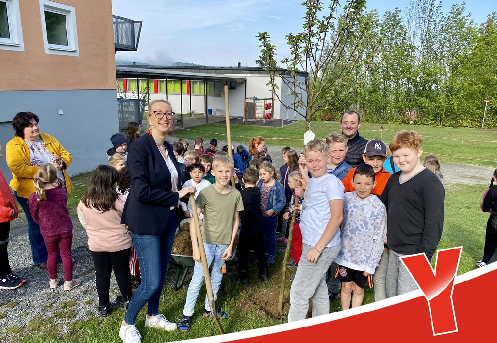 Das Projekt "Streuobstpakt" hat die Stadt Freyung dazu veranlasst, auch der Grundschule Freyung Obstbäume anzubieten. In Zusammenarbeit mit Lehrerin Claudia Evenari wurden verschiedene, alte Obstbaumsorten für den Schulhof ausgewählt. Die Rektorin, Alexandra Bauer, erklärte den Schülern beim gemeinsamen Pflanztermin der Jahrgangsstufen 1 bis 4, woran man die Obstbäume erkennen kann und bedankte sich bei der Stadt Freyung für die gespendeten Bäume.