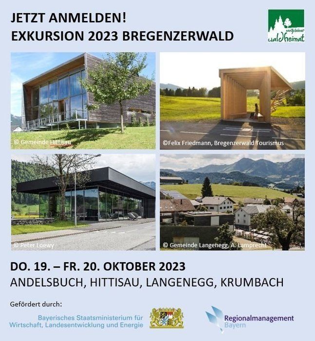 Das Konversionsmanagement der Stadt Freyung und Umgebung bietet im Oktober eine Exkursion in den Bregenzerwald an. Lernen Sie bei Dorfrundgängen, geführt von den örtlichen Bürgermeistern, Best Practice Beispiele zu den Themen „Nachverdichtung und Flächensparen“, „Zentrumsnahes Wohnen“, „Wohnen im Alter“, „Dorfentwicklung“ sowie sehr gelungene Holzbauarchitektur kennen. Mit der Exkursion möchten wir Sie inspirieren, die eine oder andere Idee in die Konversionsregion der Wolfsteiner Waldheimat mitzunehmen. Alle Bürgerinnen und Bürger aus den Kommunen der Wolfsteiner Waldheimat – Freyung, Grainet, Hinterschmiding, Hohenau, Mauth, Philippsreut und Haidmühle sind dazu eingeladen, an der Exkursion teilzunehmen. Die Busfahrt, Führungen sowie 50 Prozent der Übernachtungskosten werden durch das Konversionsmanagement übernommen. Die verbleibenden 50 Prozent, also circa 50,- € der Übernachtungskosten, müssen durch die Teilnehmer selbst übernommen werden.
