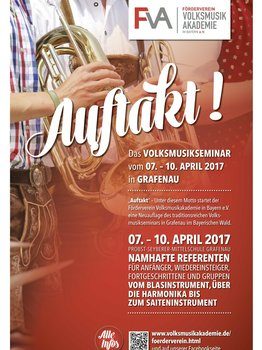 „Auftakt“ - Unter diesem Motto startet der Förderverein Volksmusikakademie in Bayern e.V. am 07. April 2017 eine Neuauflage des traditionsreichen Volksmusikseminars in Grafenau im Bayerischen Wald.