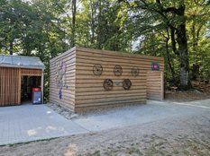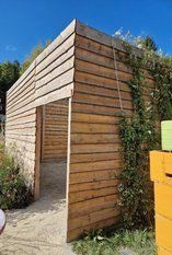 Auf dem Gelände der Landesgartenschau in Geyersberg wurden mit Bretter und Kanthölzer Sichtschutzwände aufgebaut. Diese sollen gegen Höchstgebot verkauft werden.