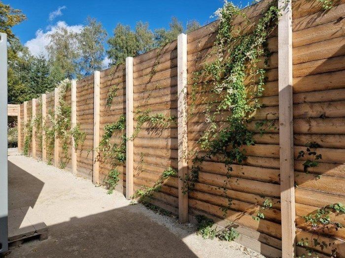 Bei den Sichtschutzwänden handelt es sich um Bretter (Stärke ca. 20 mm) und Kanthölzer (Maße ca. 115 mm x 115 mm). Die Wände sind zwischen 1,85 m und 3,60 m hoch. Gesamtmenge ca. 420 m².