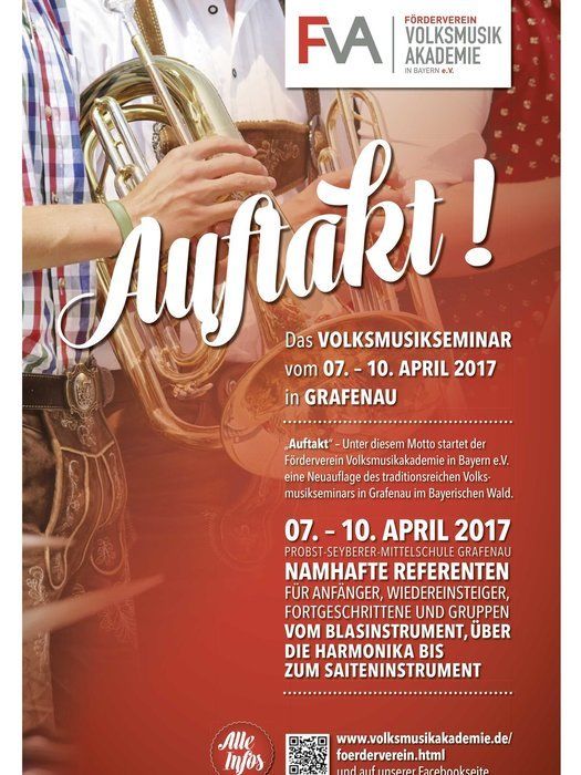 „Auftakt“ - Unter diesem Motto startet der Förderverein Volksmusikakademie in Bayern e.V. am 07. April 2017 eine Neuauflage des traditionsreichen Volksmusikseminars in Grafenau im Bayerischen Wald.