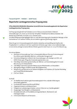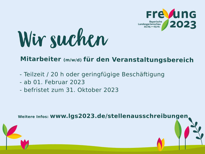 Die Stadt Freyung sucht für die Zeit der Bayerischen Landesgartenschau Freyung 2023 vom 25.05. bis 03.10.2023 einen Pächter für die Gastronomie im Kurhauses mit Außenbereich. Das Interesse zur Teilnahme am Bewerbungsverfahren kann bis 30.11.2022 schriftlich (per Post oder Email) bei der Stadt Freyung hinterlegt werden. Alle Infos zum erwarteten Leistungsumfang sowie zum Bewerbungsverfahren finden Sie hier: