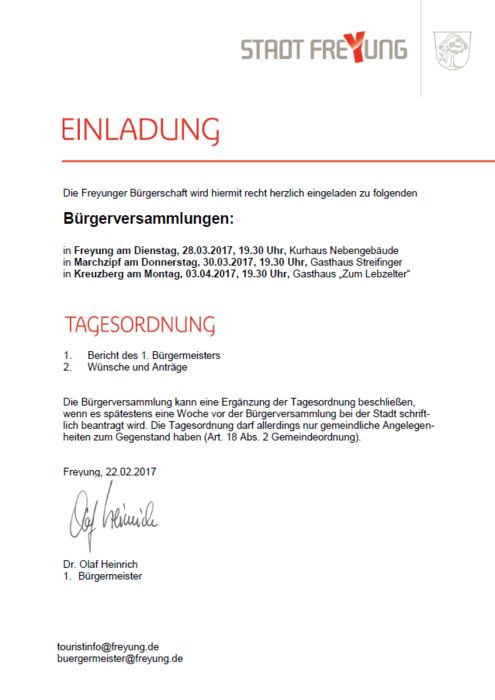 Bürgerversammlungen der Stadt Freyung - Stadt Freyung