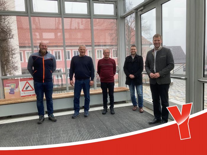 1. Bürgermeister Dr. Olaf Heinrich (1. von rechts) verabschiedet den langjährigen städtischen Mitarbeiter Franz Eder (Mitte) in den wohlverdienten Ruhestand. Bei der Verabschiedung mit anwesend sind (von links) Personalratsvorsitzender Johannes Schmid, der Betriebsleiter der Kläranlage Christian Krenn sowie Geschäftsleiter Michael Pradl.