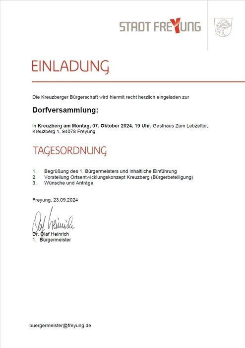 Bei Rückfragen ist Ihr Ansprechpartner: Korbinian Gibis Tel.: 08551 / 588-147 E-Mail: kgibis@freyung.de