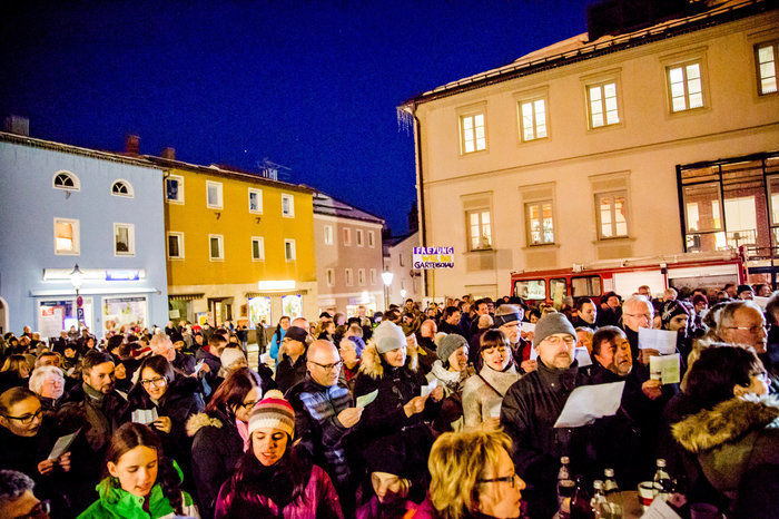 Während die Verwaltungsspitze und der Landschaftsarchitekt die Jury über das potentielle Gartenschaugelände am Geyersberg führten, trafen immer mehr Freyunger am Stadtplatz ein. Am Ende der Begehung empfingen sie die Jury mit dem Lied „Mia san Gartenschau“. Dr. Olaf Heinrich verabschiedete das Gremium mit den Worten „Sagen Sie „ja“ zu Natur in der Stadt 2022 in Freyung. Wir werden Ihnen voller Begeisterung eine kleine Gartenschau organisieren und durchführen.“ Bevor die Jury zum Konkurrenten Bad Reichenhall aufbrach, wurden sie noch von Vertretern der Wolfsteiner Werkstätten beschenkt – die Jury erhielt selbst hergestellte „Hui – Maschinen“. Eine Überraschung zum Abschluss hatte die Stadt Freyung dann auch noch parat: Als das Gremium die Stadt Freyung auf der Passauer Straße verließ, wurden sie durch folgenden Gruß in Form von brennenden Fackeln verabschiedet: Y 2022.