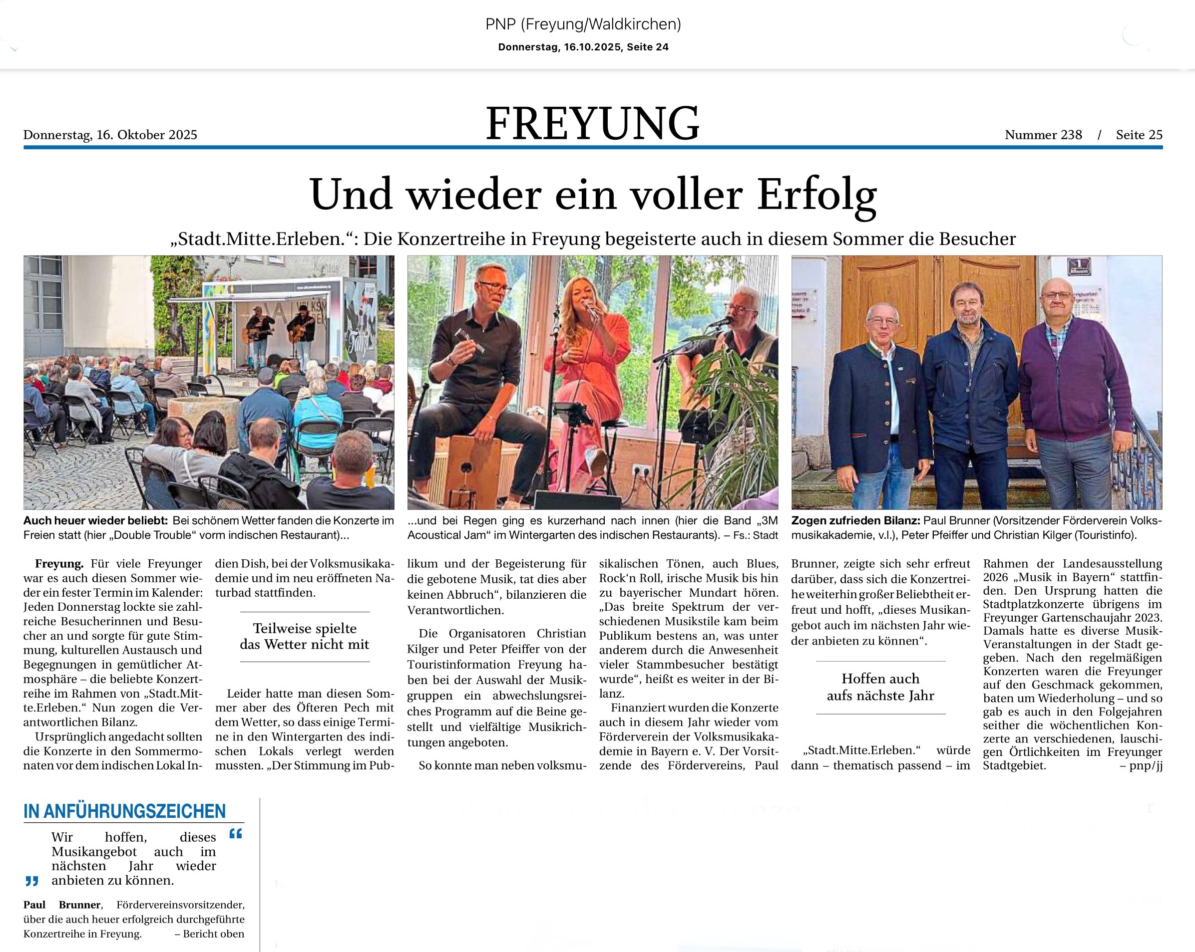 Bilanz Konzertreihe Stadt.Mitte.Erleben. / PNP 16.10.2025